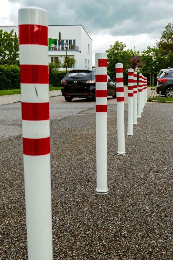 Auch Straßensperren haben Streifen