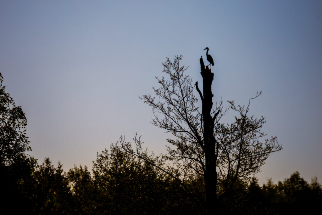 Und dann ging es ab ins Moor. Dort findet man nicht nur eine beeindruckende Naturlandschaft, die fotografisch an jeder Stelle ein Motiv bietet, sondern auch die Tierwelt ist dort in großer Vielfalt vertreten. Auf dem Bild oben ist ein Reiher zu sehen. An dem Morgen konnten wir sechs oder sieben Reiher gleichzeitig entdecken. Das ist schon etwas, was man in München sonst so nicht zu sehen bekommt.